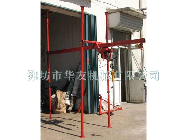 改進型推車式吊運機由普通便攜式吊運機改型而來,能有效防止因為立柱對于電機底座德擠壓而造成的底座變形,特別適合各種窗戶吊運上料(不占用窗戶高度,是目前市場上非常受歡迎的小吊機)。華友改進型推車式吊運機適用于室內(nèi)室外(不受窗戶大小的限制)、平房、樓頂、地面(可裝卸車)、車間等水平工作場地的吊運,廣泛應用于建筑工地,裝修上料、防水、車間、倉庫等。適用于各種場合起重的物質(zhì),特別適用于高層樓房的住戶能方便地從樓下吊起較重的生活用品,并適用于各種場合吊卸貨物。安全可靠 安裝方便且用單相電三相電作為動力源,這種新型吊機也可以被廣泛應用于機械制造、電子、汽車、造船、工件總裝以及高新技術工業(yè)區(qū)等現(xiàn)代化工業(yè)的生產(chǎn)線、流水線、裝配機、物流輸送等場合。對在倉庫、碼頭、配料、吊籃和空間較窄小的工作場地作業(yè),更能顯示出它的優(yōu)良品質(zhì)。是定柱式、墻壁式旋臂起重機的較佳配套產(chǎn)品。公司地址:山東省安丘市經(jīng)濟技術開發(fā)區(qū)。